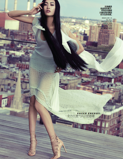 Lincoln Pilcher photographed "Sheer Heights" for the latest issue of Vogue China with makeup by Chritian McCulloch.