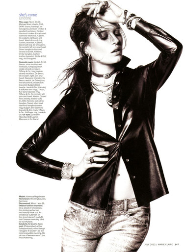 Tony Kim photographed "Denim & Diamonds" for the July 2012 issue of Marie Claire with makeup by Christian McCulloch.