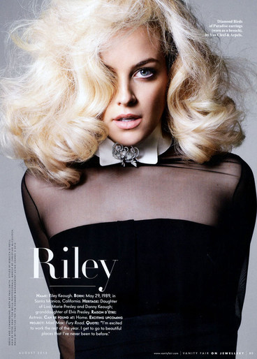 Mark Seliger photographed Riley Keough for Vanity Fair UK August 2012 jewelry supplement with makeup by Christian McCulloch and manicure by Tracylee.