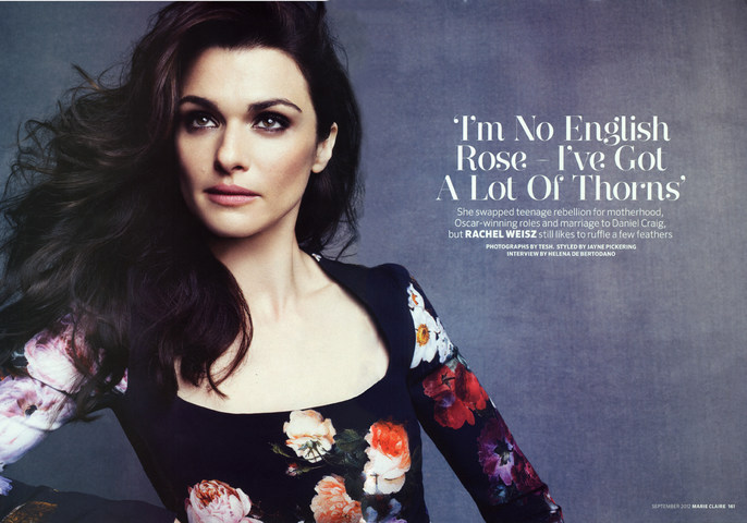Rachel Weisz covers the September 2012 of Marie Claire UK photographed by Tesh with makeup by Christian McCulloch.