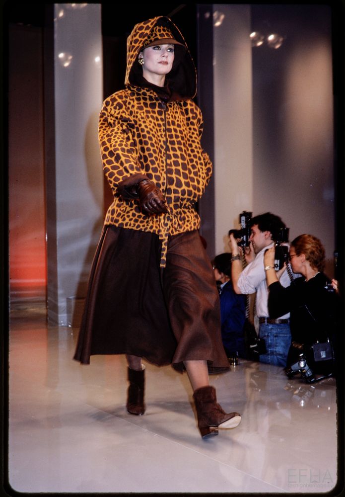 France, Paris, 26-03-1984. Fashion show of Christian Dior, autumn-winter 1984-1985 collection, women's ready-to-wear. Location: Jardin des Tuileries, Palais du Louvre, Paris 75001.